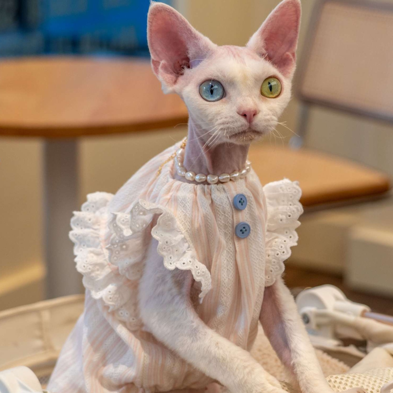 胸元の透け感のあるレース使いが、猫ちゃんを優雅に見せてくれます。