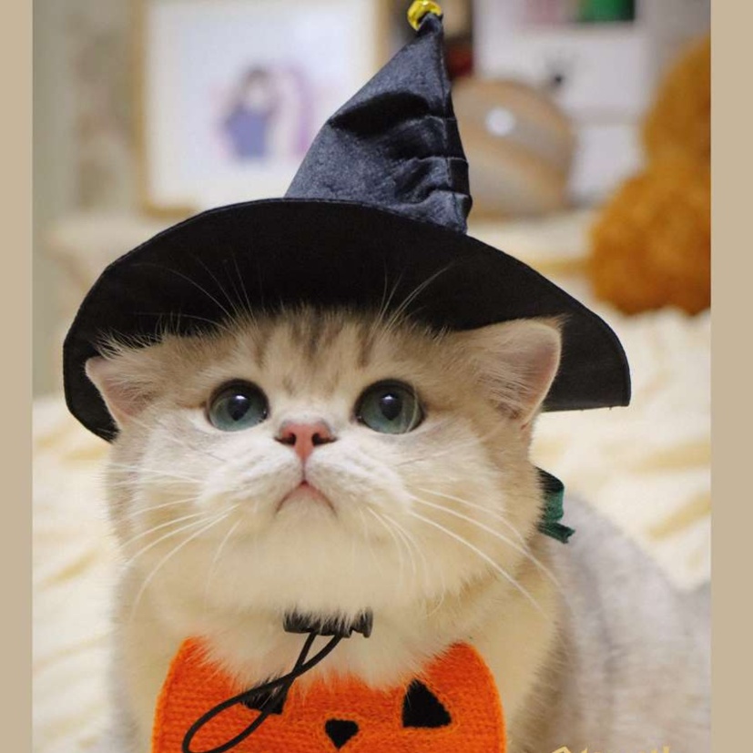 猫ちゃんが魔法使いになったような姿は、ハロウィンパーティーでひときわ目を引くでしょう。