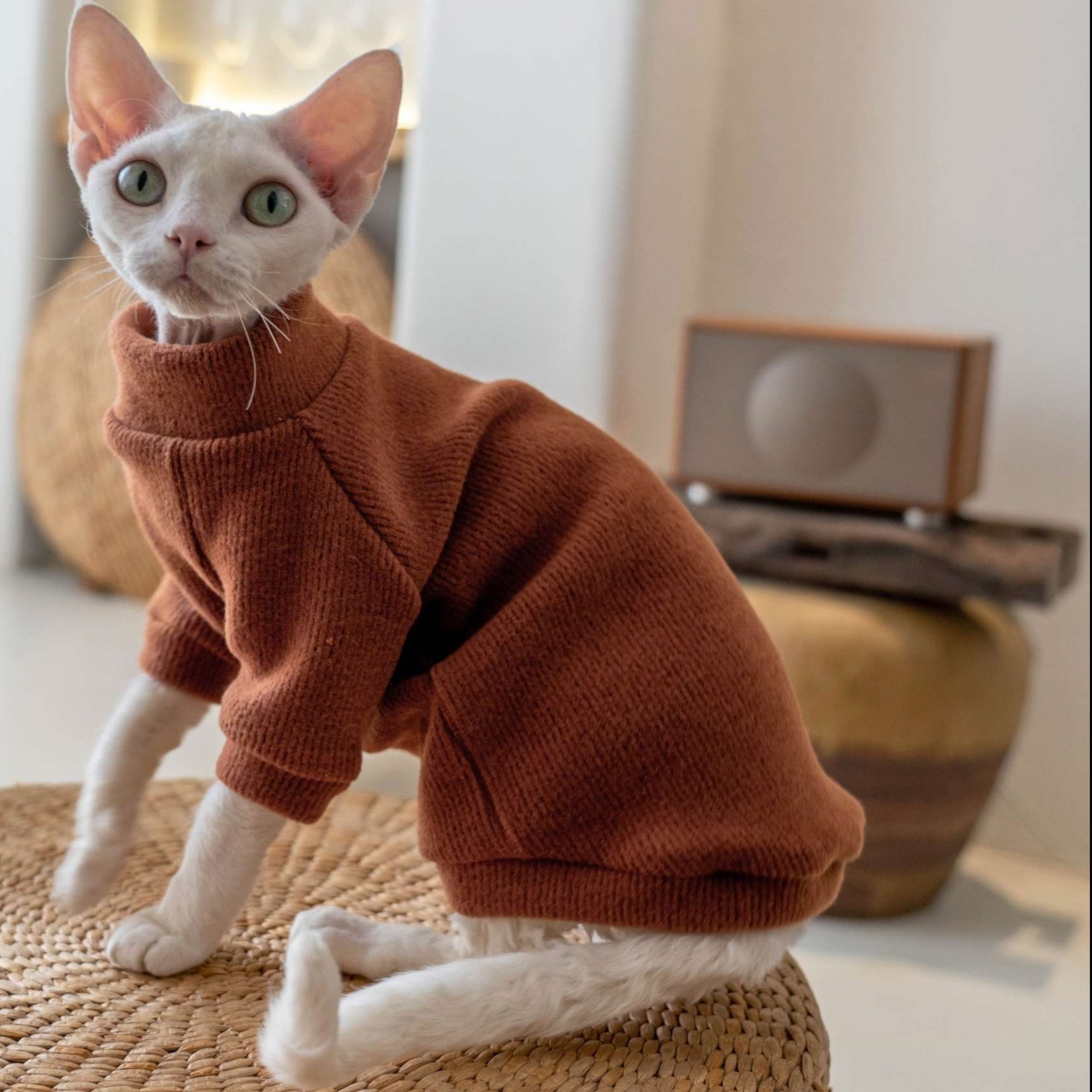 老猫におすすめの服、首元まで暖かいタートルネックデザイン