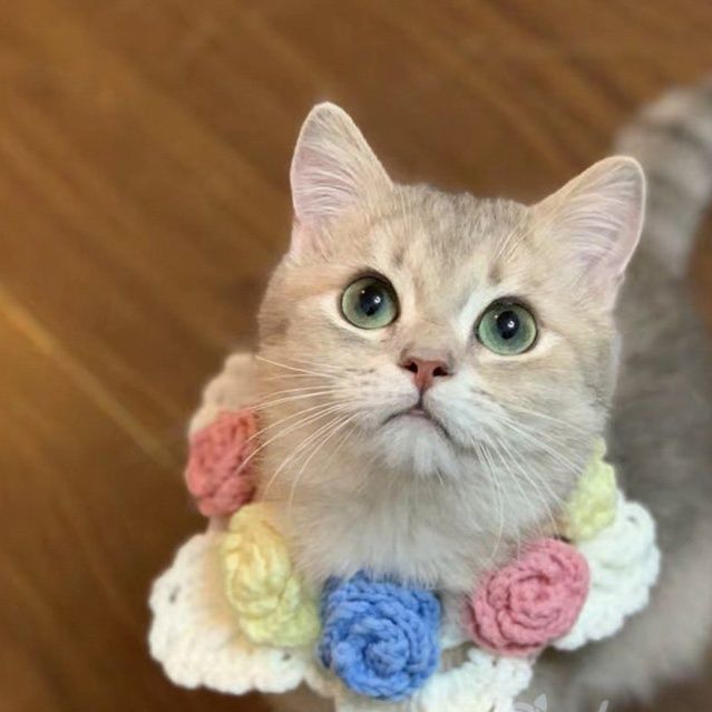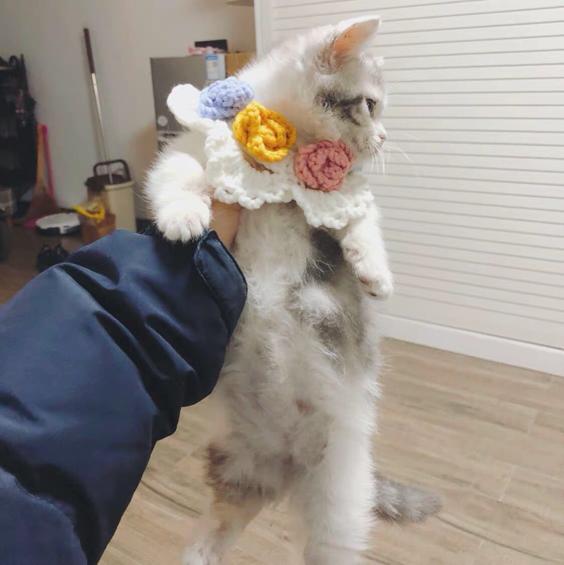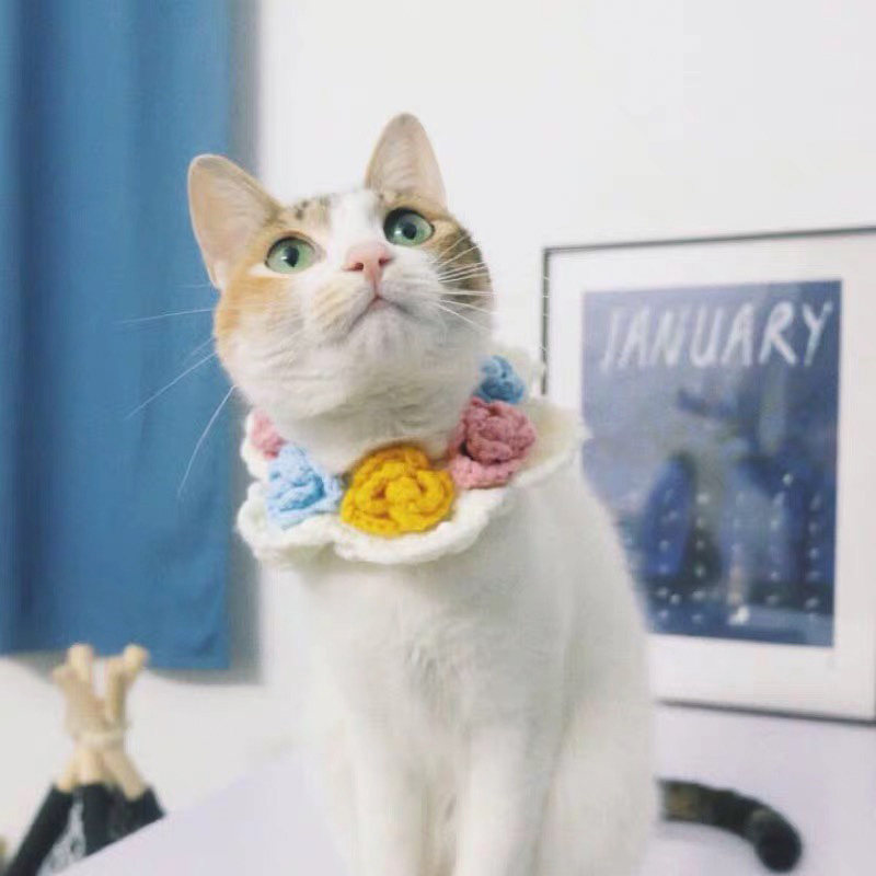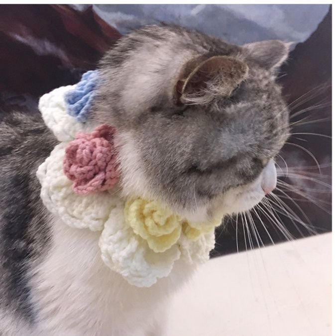 愛らしい立体的な花モチーフが首元を華やかに彩る猫服の首輪です。