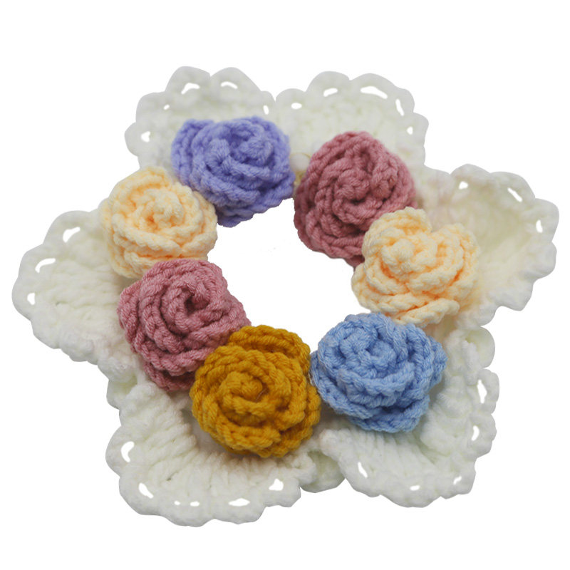 柔らかな毛糸で丁寧に手編みされたスタイ風のデザインで、軽やかな着け心地を実現しました。