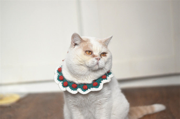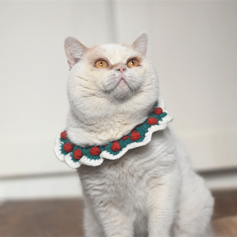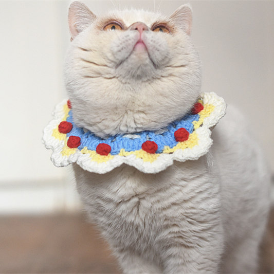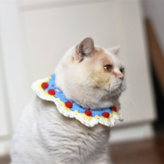 波打つフリルデザインに立体的なポンポン飾りをあしらい、愛猫を優雅で可愛らしい雰囲気に仕上げます。