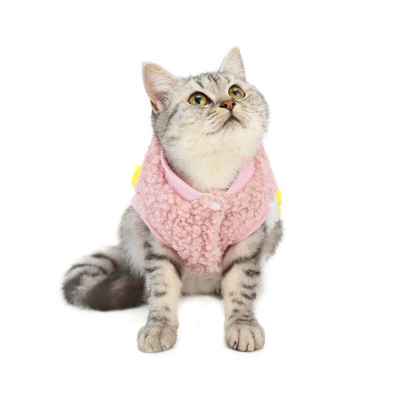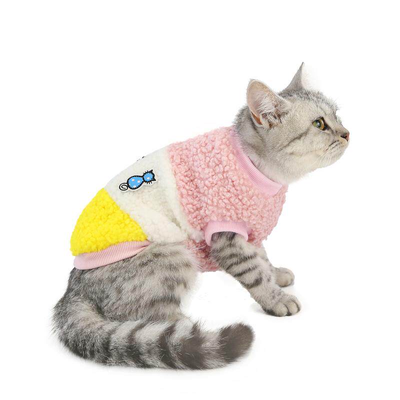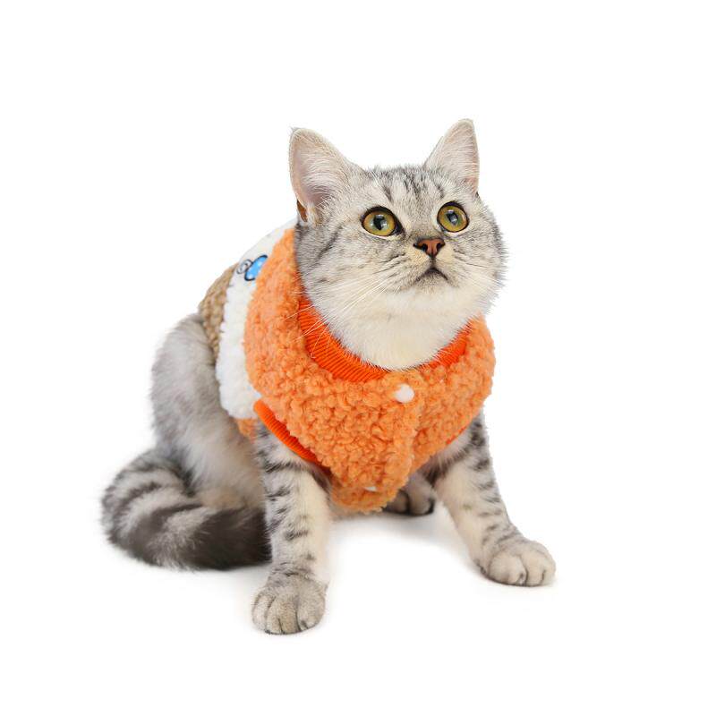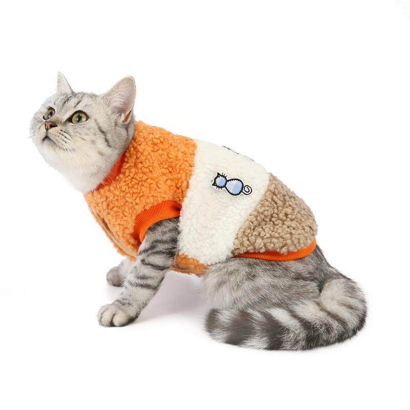 ふわふわのボア素材が愛猫を優しく包み込む、暖かな猫服です。