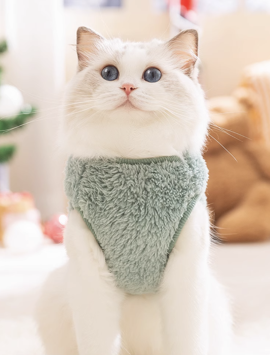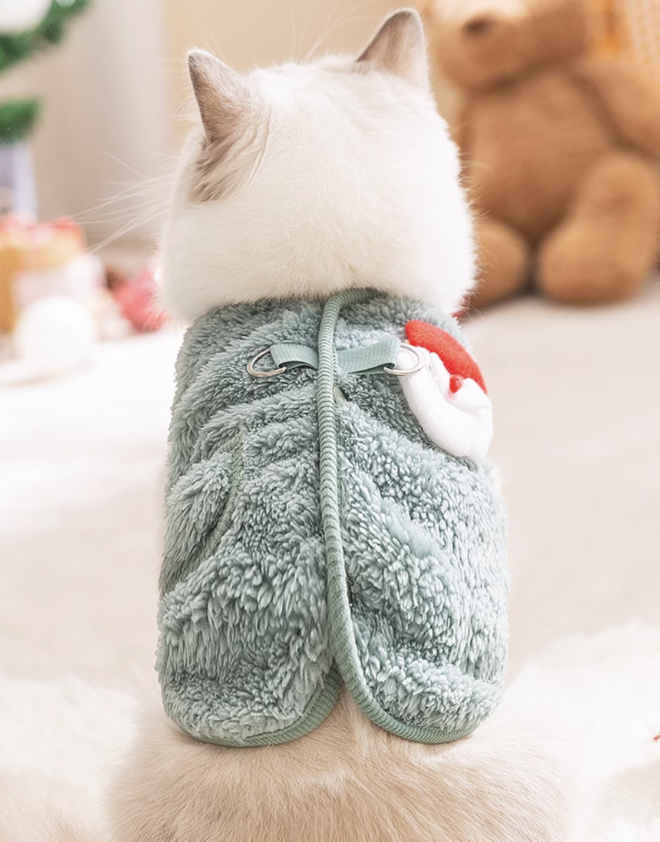 寒い季節に最適な柔らかフリース素材の猫用パーカー。可愛らしい耳付きフードと胸元のぬいぐるみが愛らしさを引き立てます。着脱簡単なマジックテープ式で、愛猫の快適さを重視した防寒デザイン。寒さからしっかり守りつつ、おしゃれなスタイルを楽しめる一着です。