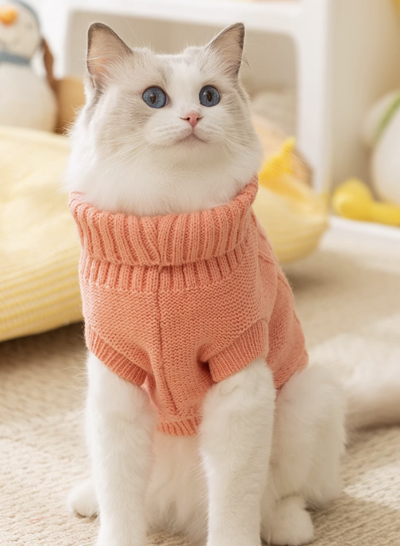 寒い季節にぴったりなニット製の猫用防寒服。ふわふわの毛並みが引き立つデザインで、温かさと可愛らしさを両立。体にフィットする仕立てで動きやすく、洗練された編み目模様が魅力を引き立てる。愛猫をおしゃれに守る、冬の必需品です。